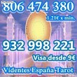 2 fotos Precio 10 € si quieres preguntar sobre las situaciones que hay en tu vida, llámanos, no te arrepentirás. somos un grupo de tarotistas y videntes españolas, unas profesionales serias y con muchos años de experiencia, no una invención. tampoco engañamos a las personas. siempre atendemos personalmente. 806 408 358 (precio max 1,21 desde r.f y 1,57 r.movil im ...