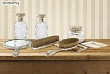 Estos frascos con sus caracteristicos tapones se empleaban antiguamente en las barberias para guardar las lociones de afeitado.