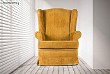 1 fotos Precio 210 € Butacón orejero de los años 50 tapizado en terciopelo color camel con rayas grabadas.