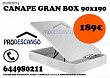 1 fotos Precio 189 € Ofertaaaaaaa!!! canapé gran box en todas las medidas con 30 cm de fondo y tapizado en polipiel. Tapa 3d para mayor transpiración. 90:189 euros / 135: 207 euros / 150: 241 euros . Llámanos !! ...