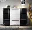 3 fotos Precio 249 € La estructura de la cómoda está fabricada en material aglomerado y los cajones en material MDF laca brillo de color negro.