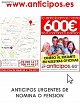 1 fotos Precio 1 € Te facilitamos hasta 500 euros de tu nómina o pensión. En tres sencillos pasos, recopila la documentación, acude a tu oficina más cercana y recoge tu dinero. .Entra en nuestra web www anticipos es o contactanos por télefono. ...