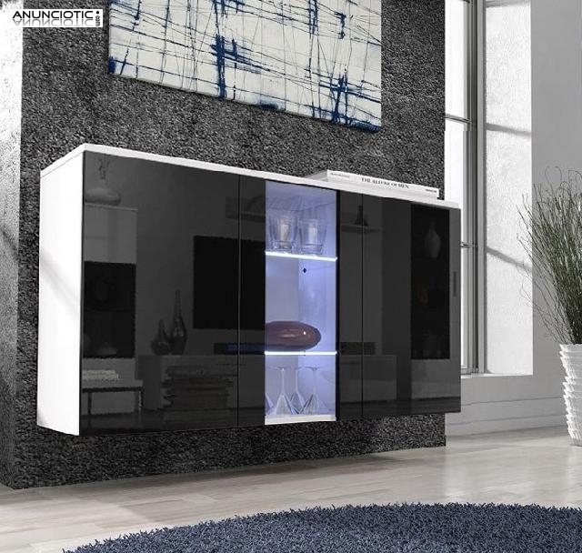 Aparador colgante de diseño Salve blanco con negro. Aparador de línea moderna ideal como mueble auxiliar para su salón de diseño moderno. Los frontales del aparador están fabricados en MDF laca brillo en color blanco. Medidas: ancho 120 x alto 70 x profundo 40 cm. Otros datos: Puertas MDF de alto brillo de PVC de 16mm. La ventaja de PVC es que no tiene cantos rectos, sino redondeados. Puertas abatibles con sistema push-click Este mueble viene desmontado en una caja: 127x42x18cm 43 kg Formas de pago: Contra reembolso (+4%, solo disponible en servicio Economy) Por banco Por tarjeta de crédito/débito Por Paypal En efectivo en nuestras tiendas en Alicante o Madrid Gastos de envío (servicio economy): Para importes hasta 500 euros cobramos portes, pedidos superiores a 500 euros envío gratis. Para ver todas las tarifas pinche aquí Mantenimiento y consejos: Para ver las recomendaciones pinche aquí Disponemos de muchas configuraciones. Puedes encontrar mucho más en www mueblesbonitos com