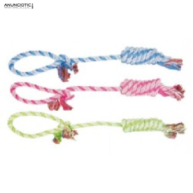 Cuerda dental muy resistente bicolor que además de proporcionar horas de entretenimiento a su mascota, le ayudará a favorecer la musculatura de la mandíbula y la prevención de sarro y mal aliento. Ideal para perros nerviosos, pues desgastarán energía sin que mastiquen cosas de la casa...www nuestroperro es