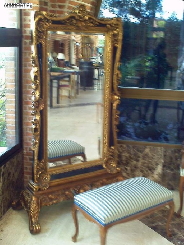 Se vende espejo de pie con marco dorado, de gran valor.